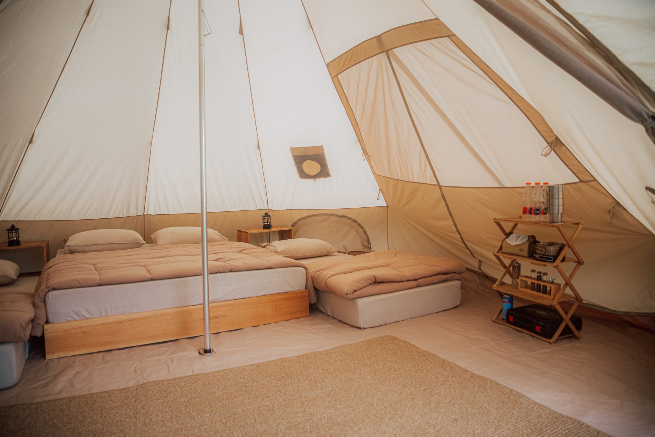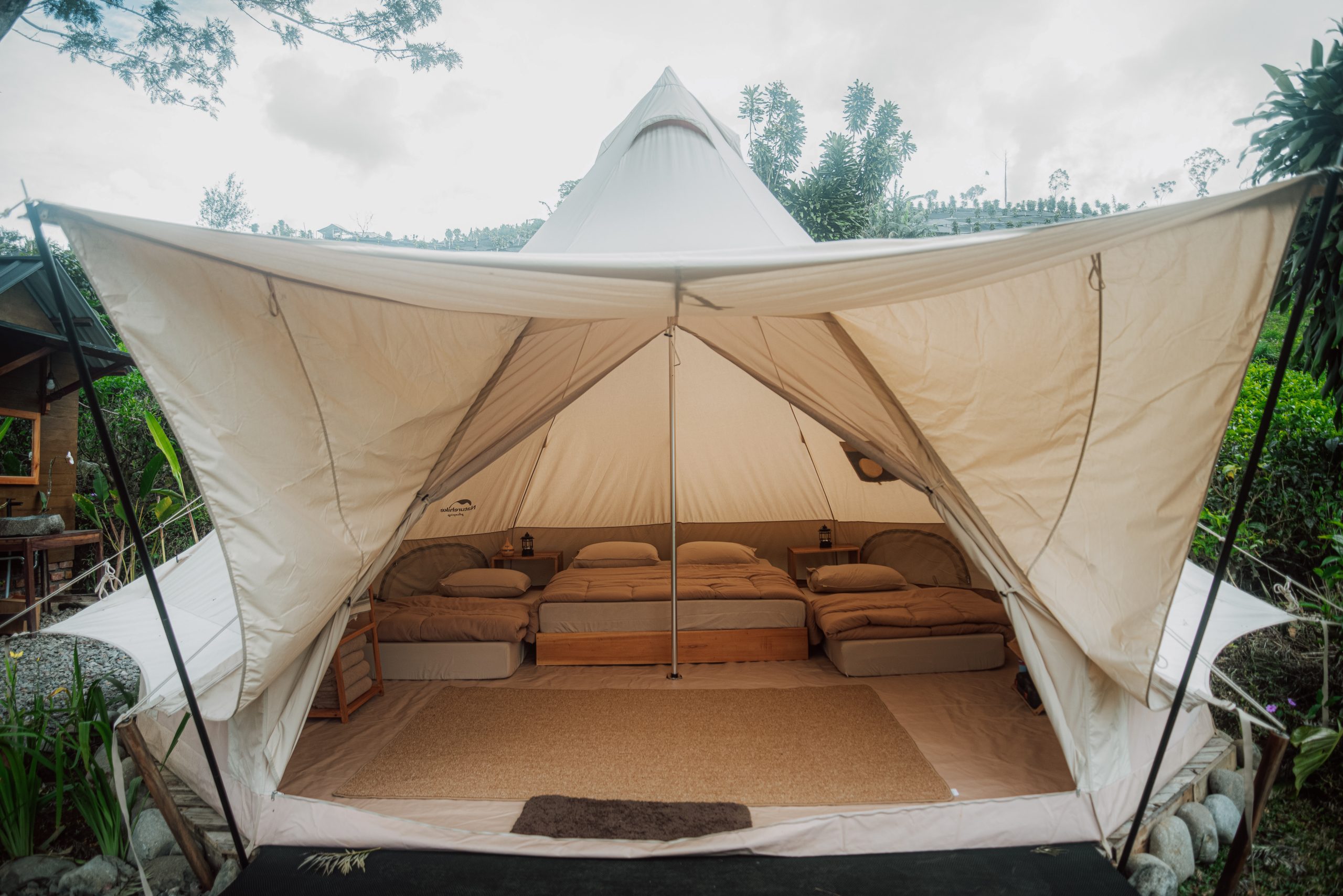 Pilihan tenda terbesar dengan dua kamar terpisah, sangat cocok untuk keluarga yang membutuhkan ruang lebih.